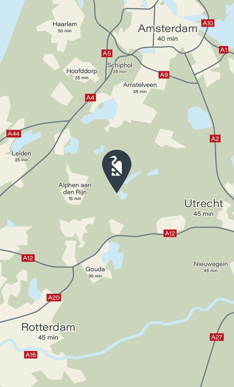 Nieuwkoop ligt centraal in het Groene Hart van de Randstad.